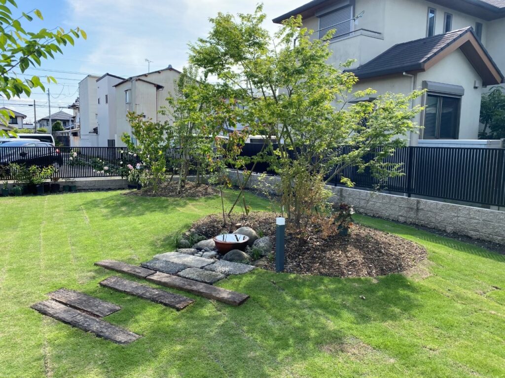 シンボルツリーから低木・下草までバランス良く配置し、お庭全体の景観を整えます。