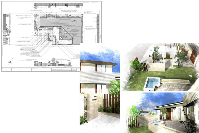図面や立体パースをもとに、植栽・カラー・素材・レイアウトの調整を行い、お客様が納得できるまでブラッシュアップいたします。